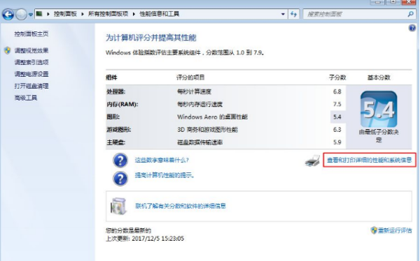 系统分级,点击“windows体验指数”看第4步,如果没有指数,则点击“系统分级不可用”;