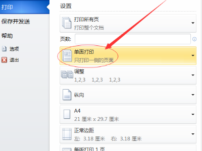 4、在打印菜单栏下面有很多可以调整的地方,比如,自己需要打印单面可以调节为单面。如下图所示。
