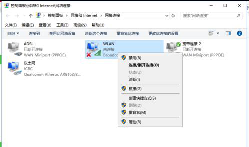 4、在“WLAN无线网络”图标上点击鼠标右键,在弹出的菜单中,点击“诊断”。