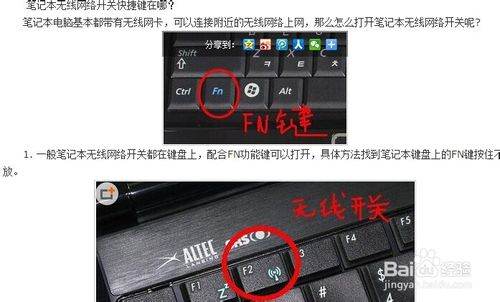2、无线开关没有打开。(可以利用笔记本快捷键操作开启无线功能。)