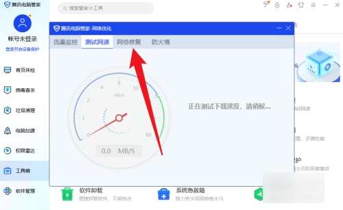 2、点击测试网速