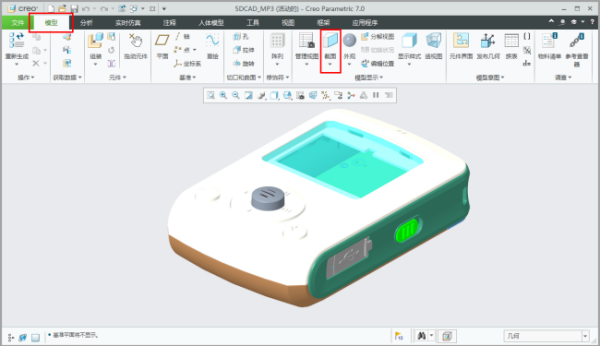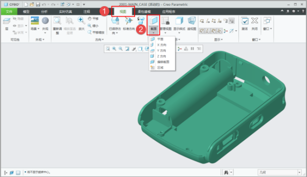 Creo创建剖切也就是常说的创建剖面,在零件和装配环境下有不同的指令位置: