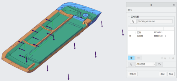 可以选择两个平面,然后用或、和的不同关系来确定显示的区域。