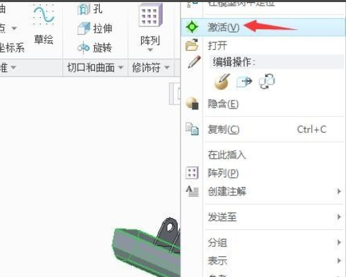 2、首先将大的零件激活,选中零件,右键选择激活。