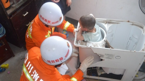 这个男孩的妈妈在拍视频的时候,原本以为从洗衣机里出来并不是什么难事,但是在妈妈结束拍视频,把男孩从洗衣机里拉出来时发现仅凭这位妈妈自己一个人的力量是无法让男孩脱离洗衣机的。于是这名妈妈选择了给119打电话寻找消防员的帮助。消防员接到电话之后马上就采取了行动,消防员一开始是试图让小男孩自己从洗衣机里出来,但是小男孩被卡得不能动弹,所以没有办法,消防员就对洗衣机进行了拆卸,最后成功把小男孩从洗衣机里救了出来之后,消防人员又帮助小男孩的妈妈把这个洗衣机修理好了。