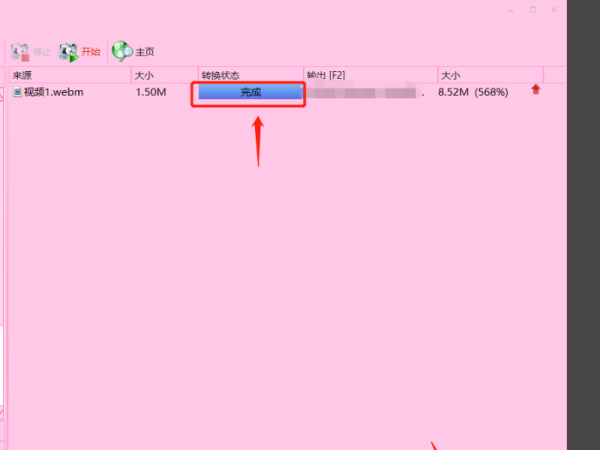 7、在转换结束后,界面中的转换状态显示完成,同时在软件的右下角弹出完成浮框。此时视频转换已经完成。