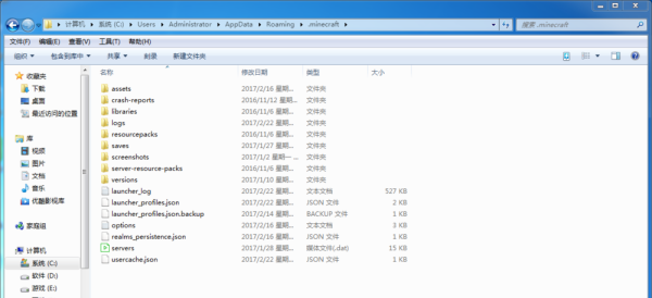 二、进入.minecraaft文件夹后查看一下其他文件夹的排列。如图所示