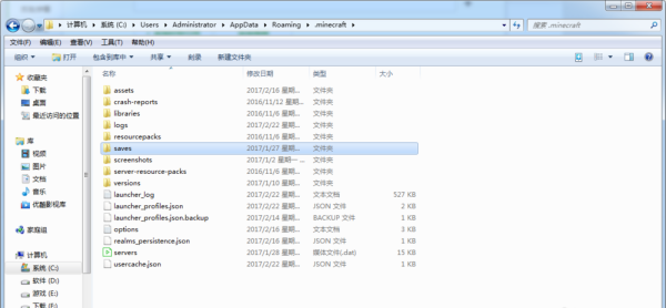 2.".minecraft"文件下有个“saves”,打开改文件夹(或者打开“versions”)