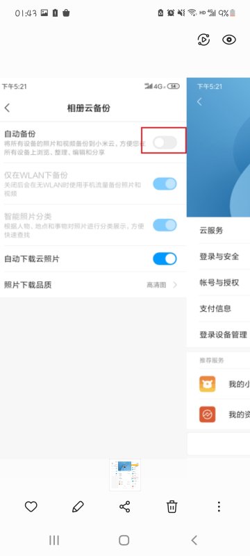 方法一,现在的手机,基本上都有自动备份功能。如果你在手机上进行备份了,就可以直接在备份中将误删的图片恢复。我们以小米手机为例。首先我们需要确认你在删除照片之前就已经开启自动备份,然后登陆小米账号,进入小米云服务中,点击相册进行同步即可。