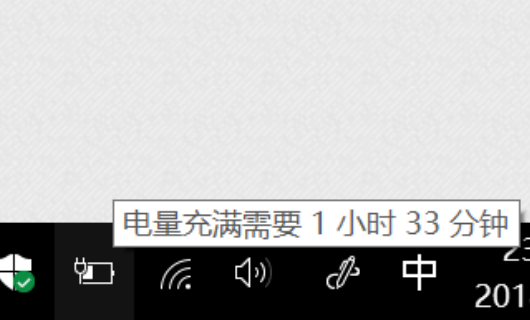 6、接入电源后,系统会自动关闭“电池电量不足”的提示框,然后把鼠标移动到电源图标,就可以看到正在充电。