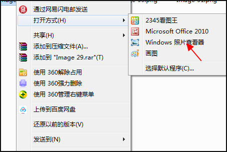 2、接下来在图片上点击右键之后,然后在出现的菜单栏中,点击打开方式中的图片查看器,如图