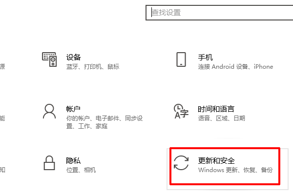 3、在弹出的所有设置界面,选择下方的更新和安全。