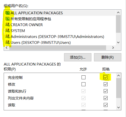 右键属性-->安全-->编辑-->将组或用户名下的所有选项分别选择完全拒绝(如提示错误可不选)