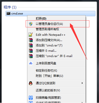 第二步:右击”Cmd“,点击“以管理员身份运行”