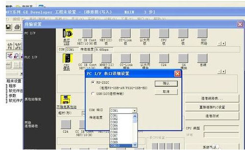需要设施端口,一般把你的COM口,设置成38400码率,还有其他设置。最好看看说明书。pLc与电脑连接不上