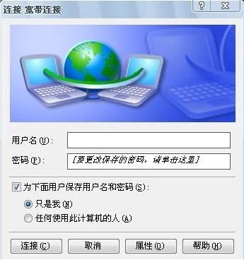在宽带连接里面输入正确的用户名和密码后,点击连接才能够和运营商远程计算机实现连接,实现上网。