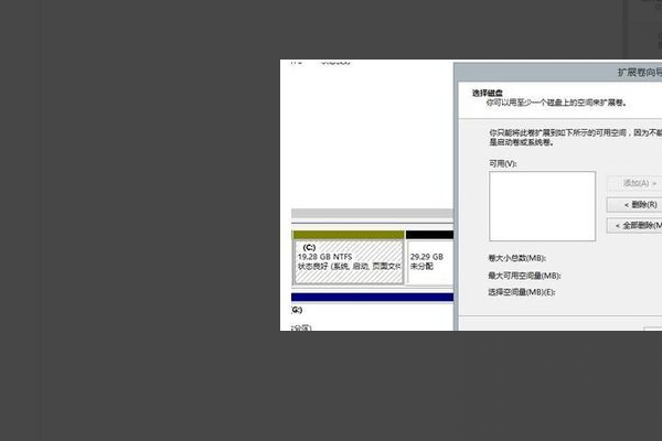 3、然后在界面内把30G的D盘即将扩展到C盘即可解决C盘可用空间突然变成0字节的问题。