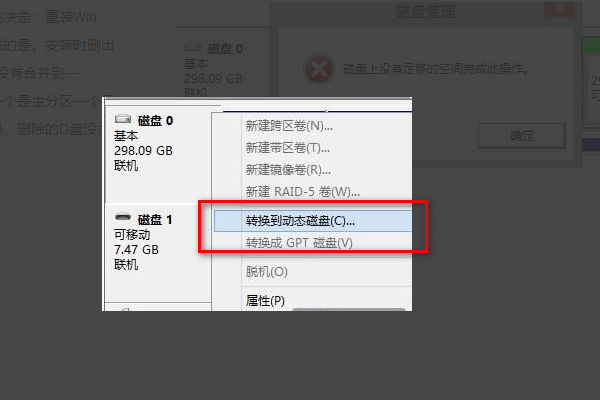 1、首先打开计算机,在计算机内右键单击变成0字节的磁盘,并在弹出的选项栏内找到”转换为动态磁盘“选项并单击。