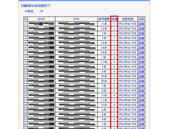 5、查看其他路由器的信道。刷新几次后点击“返回”。