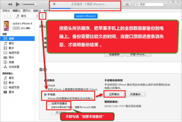 2,使用iTunes软件(下载地址:官方下载),将手机数据备份到电脑。