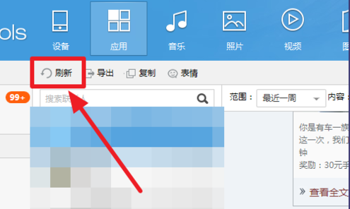 1、首先打开itools,将设备连接到电脑,然后点击上方的【应用】。