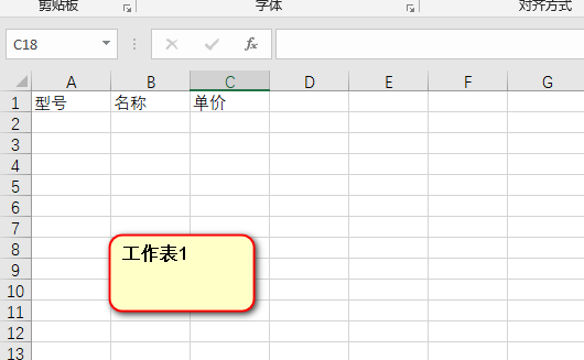 1、电脑打开Excel表格,工作表2中输入型号、名称和单价。