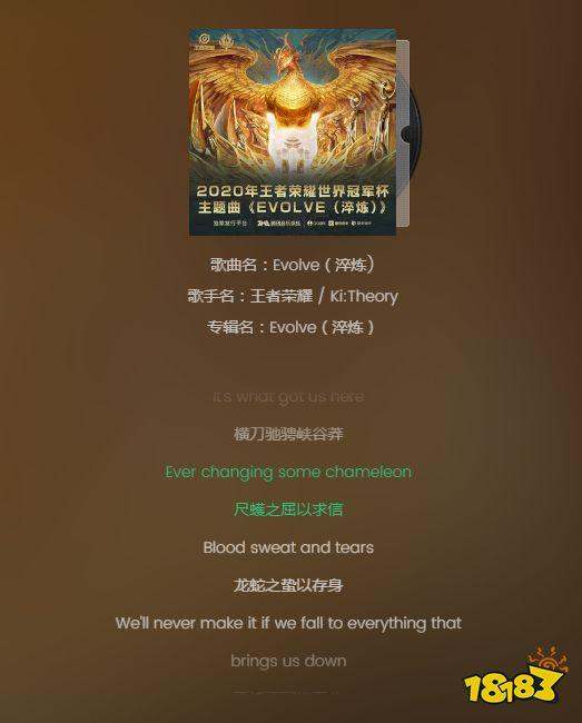 王者荣耀世界冠军杯主题曲《evolve》(歌曲中文名:淬炼)