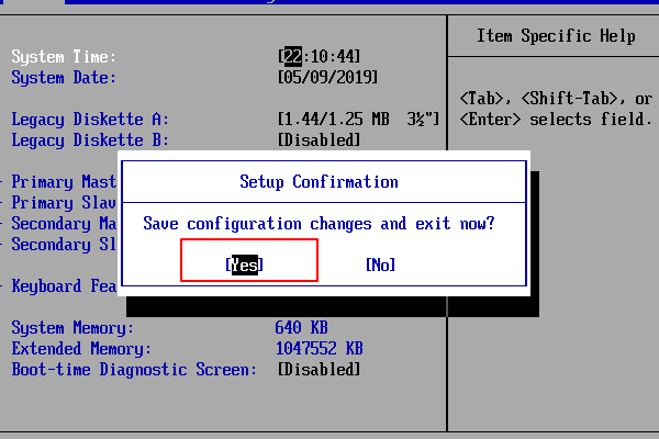 3、按键盘上的f10键,然后点击回车,即可自动重启。