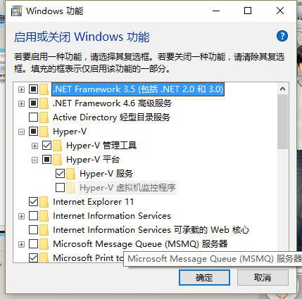 然后勾选整个Hyper-V选项,按确定保存后重启即可开启虚拟机了!