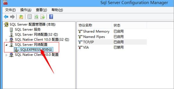 1、第一步,打开sql服务器配置管理器,找到“SQL Server网络配置”选项,然后找到“SQLEXPRESS的协议”(本例中实例名为SQLEXPRESS),见下图,然后进入下一步。