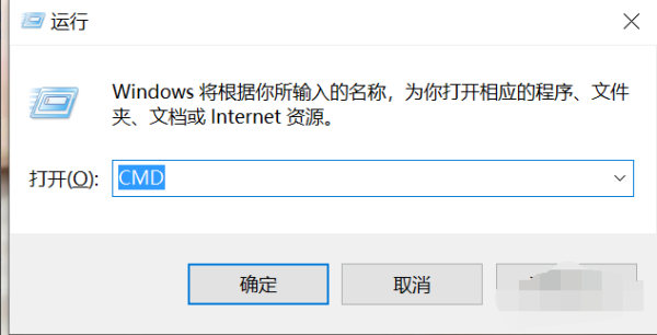 3、同时按下键盘上的Win+R键,并输入CMD。如图所示: