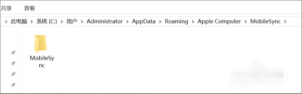 创建成功后C盘的MobileSync文件夹是这样的,如果没有那个蓝色箭头,说明没有成功,自己按重新步骤仔细操作。新建的文件夹位置完成图如下图所示: