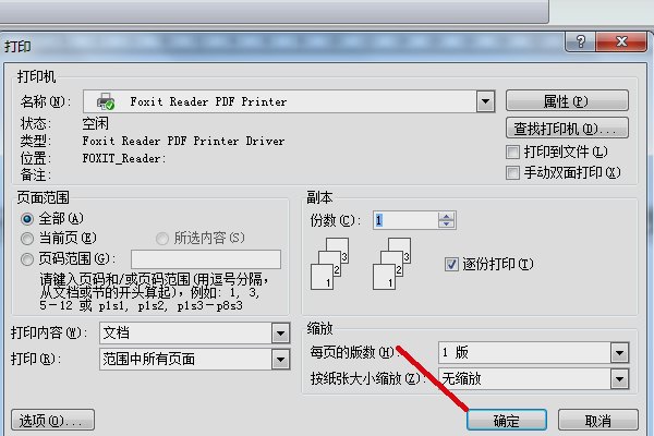 4、然后在打印界面,选择好可以打印的打印机,设置好其它设置,点击确定按钮进行打印即可。