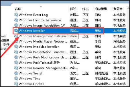 6、进入服务列表,找到Windows Installer服务双击进入,如下图所示: