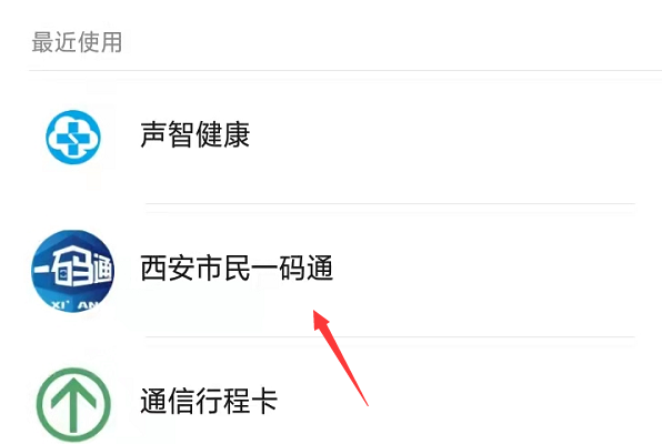 2、页面跳转以后进入到小程序界面,点击西安一码通进入。