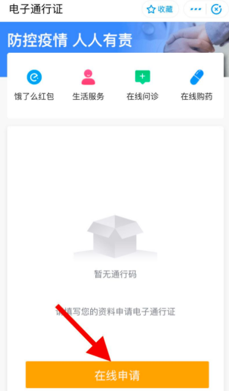 在支付宝搜索页面中搜索“社区一码通”,进入社区一码通页面后,点击“在线申请”。