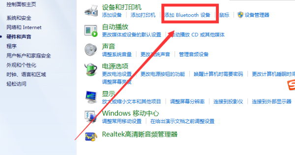 3、然后我们在其中找到添加蓝牙设备,如图框线处所示的,我们点击进入即可。