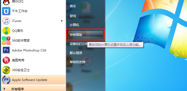 1、点击开始然后我们可以看到下图所示的页面,我们在这里找到图中框线处的控制面板,点击进入