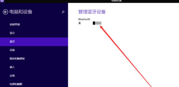 6、输入蓝牙设置,左击进入蓝牙设置界面。左击“关”。同时打开蓝牙设备。