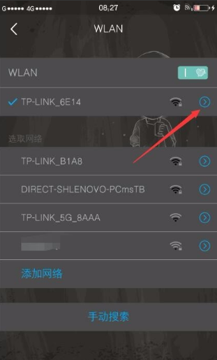 4、连接无线网后红色箭头所指的方箭头标示按钮进入;