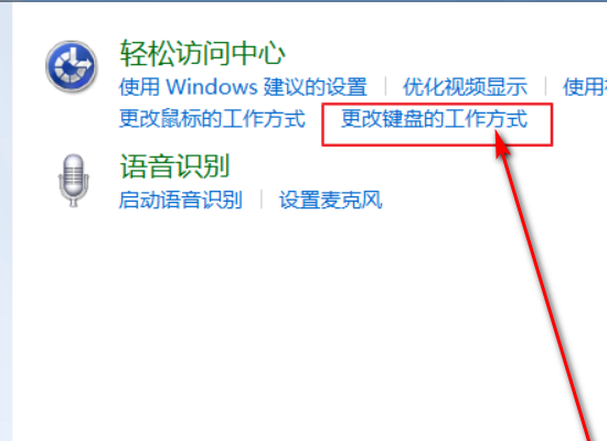 3、在随后进入的界面中点击“更改键盘的工作方式”。