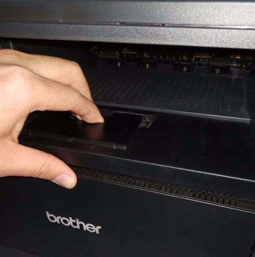 1、按下惠普1108打印机打印机如图所示的按钮,以便取出硒鼓。如图所示