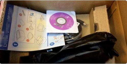 1、首先,打开打印机盒,里面会有打印机数据线、驱动盘、碳粉鼓和打印机等,如图所示。