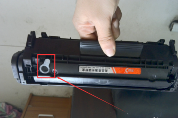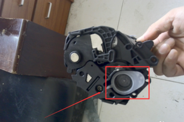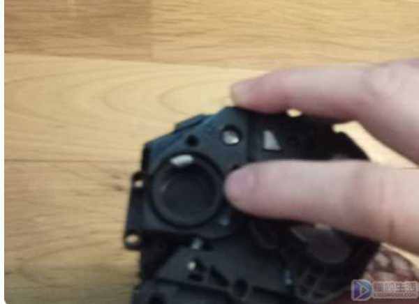 2、硒鼓正面有一个孔打开孔盖,先倒出废粉。