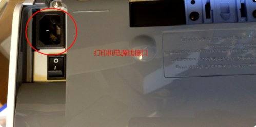 6、然后,找到打印机电源线和数据线。带USB接口的小的是打印机数据线,粗的是电源线,接着将电源线的一端插入打印机尾部的三角形电源插座,并将另一端连接到三角形电源插座,如图所示。
