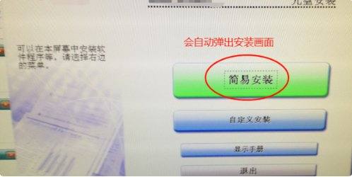 9、接下来,将CD-ROM放入CD-ROM驱动器后,计算机将自动运行CD-ROM驱动器的打印机驱动程序文件安装屏幕,单击“轻松安装”,然后执行下一步,如图所示。