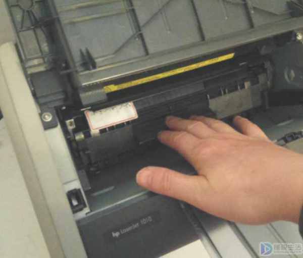7、添加完成之后,将惠普1108打印机的硒鼓放回惠普1108打印机,合上惠普1108打印机的盖子,就完成了。如图所示