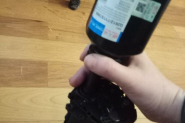 3、经过一系列左晃右晃,上晃下晃后,终于把废粉从排放口完全排放干净了。然后我们用酒精擦干净硒鼓机身,然后塞住排放口。整个过程后,第一双乳胶手套会变得特别脏,此时脱下扔掉。