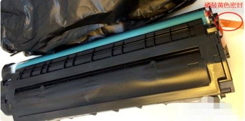 3、硒鼓侧面有另一个孔是加粉口,打开盖子加粉,加完后盖上盖子用手左右摇晃碳粉盒,使碳粉盒中的碳粉均匀分布。