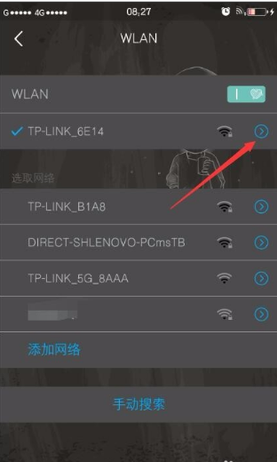 4、当前连接无线网点击后方箭头标示按钮进入,如图。